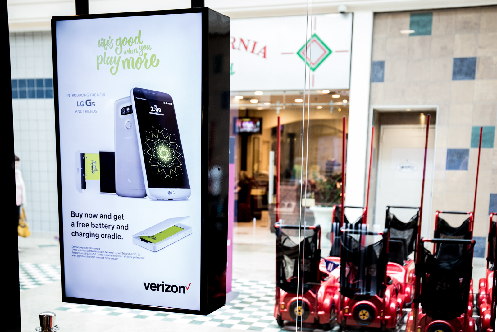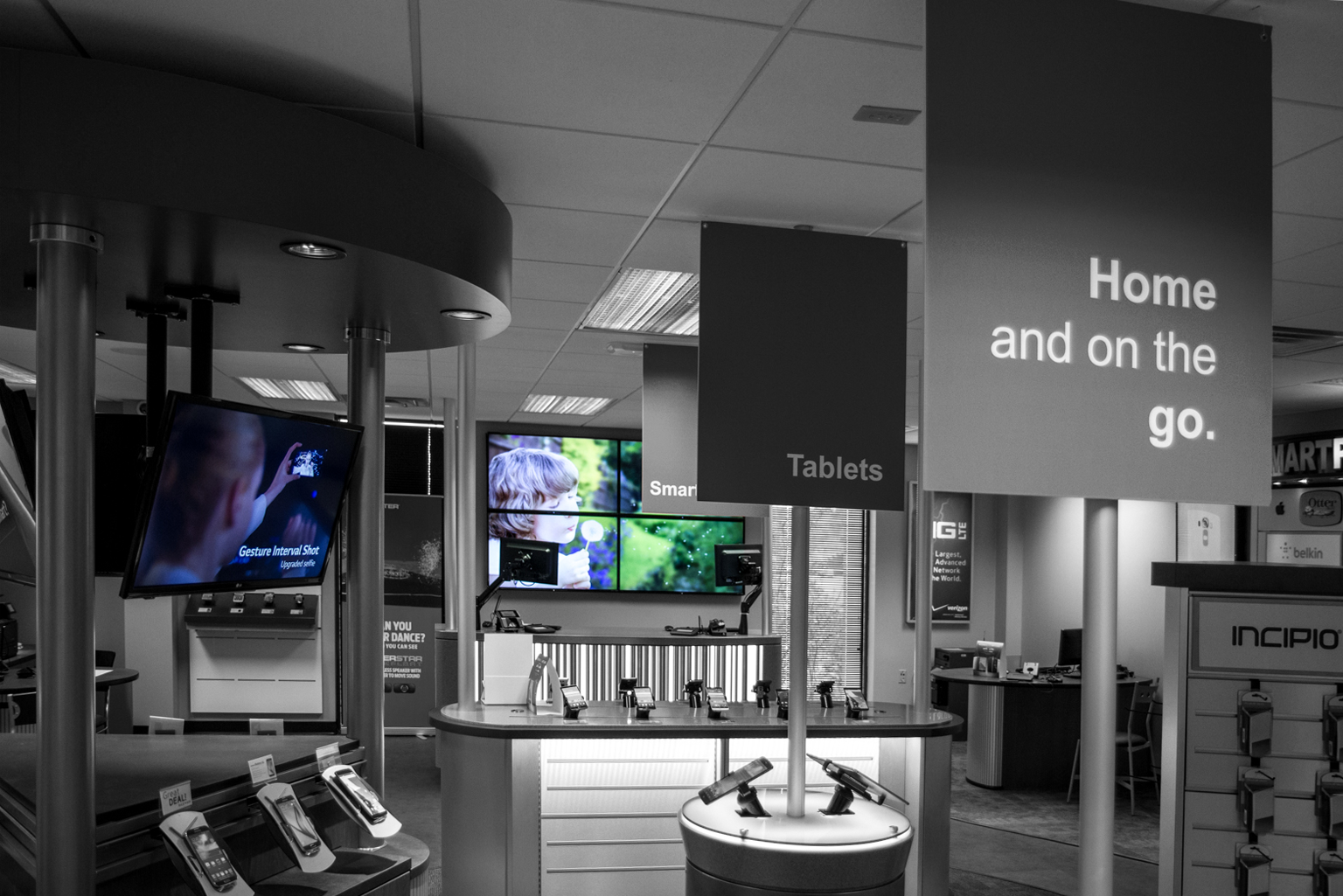 Cellular Sales pioneered digital signage on a huge scale. Graphics can be send to any screen in any store across the county, wirelessly.